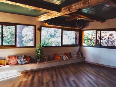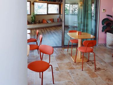 Nous proposons 3 espaces différents (salle de yoga, salle intérieur coffee shop, terrasse extérieure)